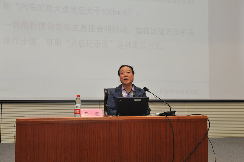 圖為中國(guó)汽車認(rèn)證中心主任強(qiáng)毅作標(biāo)準(zhǔn)專題知識(shí)講座
