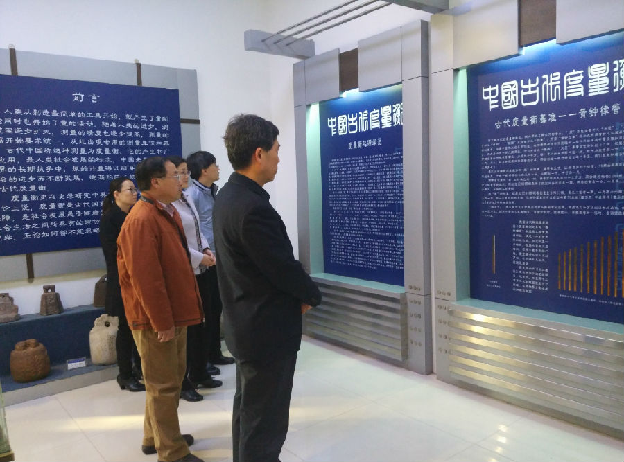 圖為李迎豐參觀山東省計(jì)量院度量衡博物館