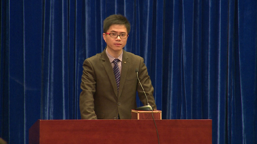圖為2015年度工作標(biāo)兵代表劉焱作經(jīng)驗交流