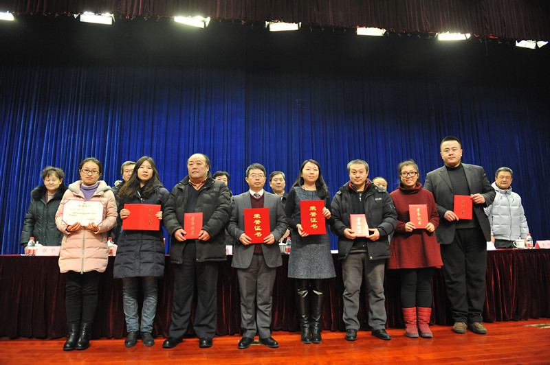 圖為2015年度先進(jìn)黨支部和優(yōu)秀黨員代表上臺領(lǐng)獎
