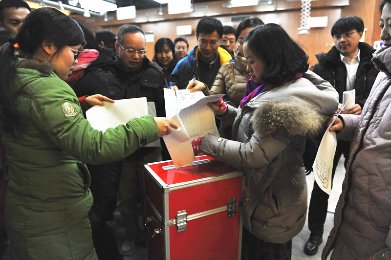 圖為出版社領(lǐng)導(dǎo)班子及其成員述職述廉會議投票現(xiàn)場