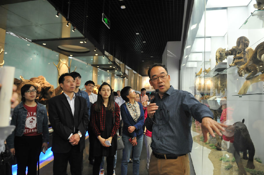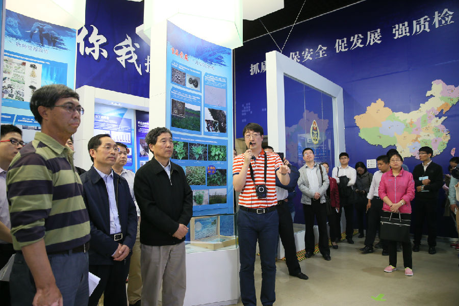 在中國科學(xué)院動物研究所動物進(jìn)化暨系統(tǒng)性重點實驗室主任張潤志研究員以及國家動物博物館館長孫忻的陪同下,大家首先參觀了質(zhì)檢總局動植物檢疫監(jiān)管司與中國科學(xué)院動物研究所、國家動物博物館共建的國門生物安全分館,詳細(xì)了解了中國檢驗檢疫部門截獲入境有害生物、嚴(yán)格把關(guān)保衛(wèi)國門安全的情況,隨后參觀了動物標(biāo)本精品展廳、鳥類展廳和瀕危動物展廳。大家在一件件標(biāo)本前駐足觀看,聆聽工作人員講解動物知識,仿佛置身于動物世界,盡情領(lǐng)略生物多樣性之美。