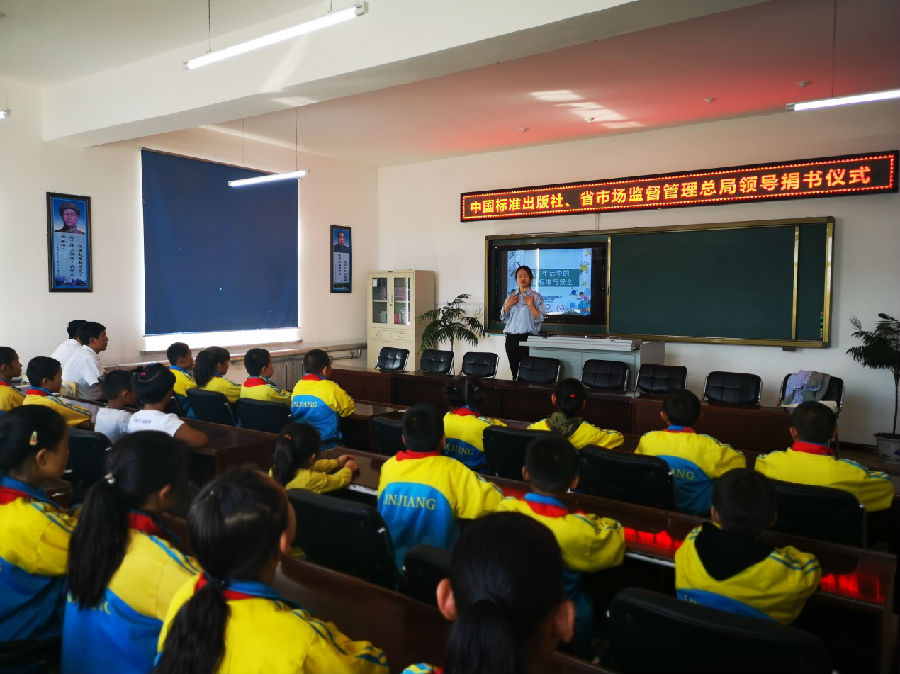 圖為中國標準出版社培訓講師為臨江鎮(zhèn)中心校全體師生普及
