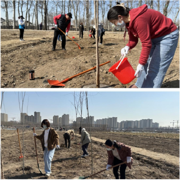 在紅星集體農(nóng)莊,支部黨員們首先參觀了農(nóng)業(yè)機(jī)械陳列,了解新中國成立初期農(nóng)業(yè)機(jī)械化自立自強(qiáng)、自主創(chuàng)新的歷史。隨后,大家來到植樹區(qū)開展了植樹活動。揮鍬鏟土,培土圍堰,提水澆灌……大家分工有序,配合默契,干得熱火朝天。經(jīng)過一番勞動,一棵棵樹苗錯落有致、昂首挺立,為大地增添了新的生機(jī)和活力。